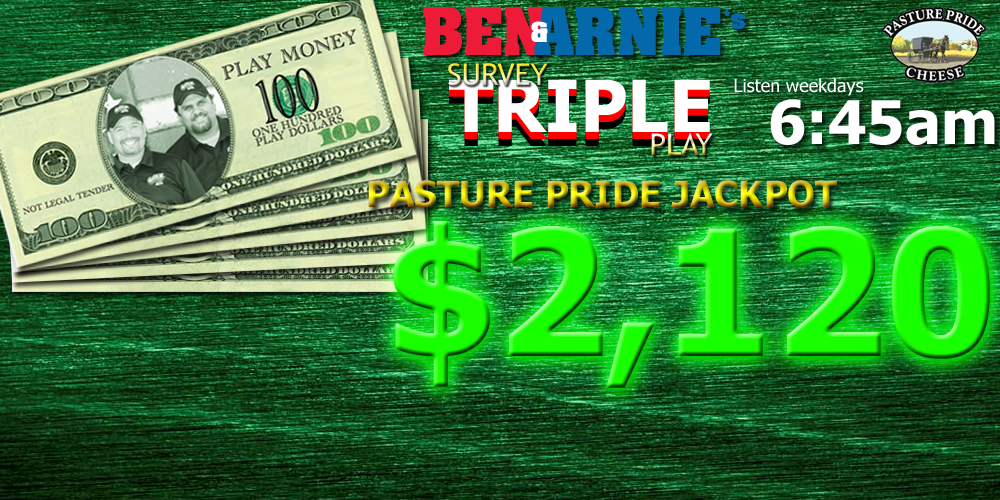 Listen weekday mornings at 6:45 for Ben & Arnie’s Survey Triple Play with Pasture Pride Cheese!