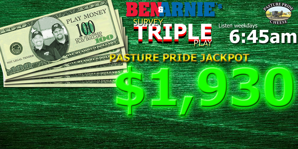 Listen weekday mornings at 6:45 for Ben & Arnie’s Survey Triple Play with Pasture Pride Cheese!